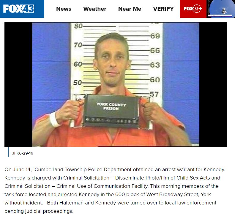 “When pleading guilty to unlawful use of his cell phone, Kennedy also admitted he asked a person for child pornography and offered to pay for it. But the charge of criminal solicitation for dissemination of photo or film of child sex acts was withdrawn, which carried sex offender registration requirements, according to Megan’s Law’s Website.